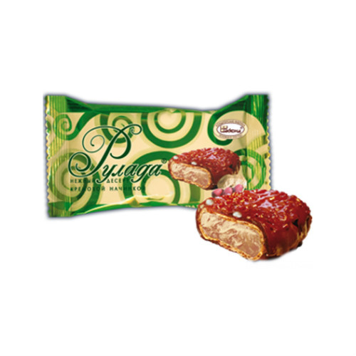 Десерт "Рулада" арахис мини производства кондитерской фабрики "Акконд" можно купить оптом с доставкой по Москве, Подмосковью и ЦФО. Низкая цена обусловлена отсутствием посредников при наличии прямого договора с производителем. Все актуальные сертификаты в наличии. Минимальный заказ: 1 коробка