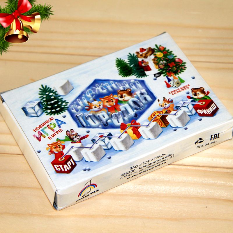 В комплекте:игровое поле из плотной бумаги, 4 фишки и кубик.