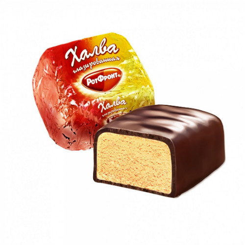 Халву в шоколадной глазури производства Рот Фронт можно купить оптом с доставкой по Москве, Подмосковью и ЦФО. Низкая цена обусловлена отсутствием посредников при наличии прямого договора с производителем.  Все актуальные сертификаты в наличии. Минимальный заказ: 1 коробка