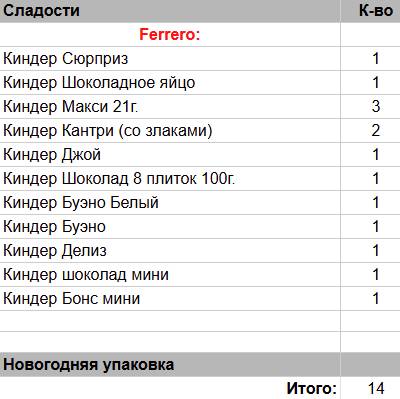 Кол-во сладостей: 14 шт.