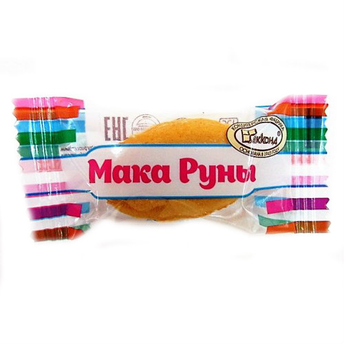 Конфеты Мака Руны производства кондитерской фабрики "Акконд" можно купить оптом с доставкой по Москве, Подмосковью и ЦФО. Низкая цена обусловлена отсутствием посредников при наличии прямого договора с производителем. Все актуальные сертификаты в наличии. Минимальный заказ: 1 коробка