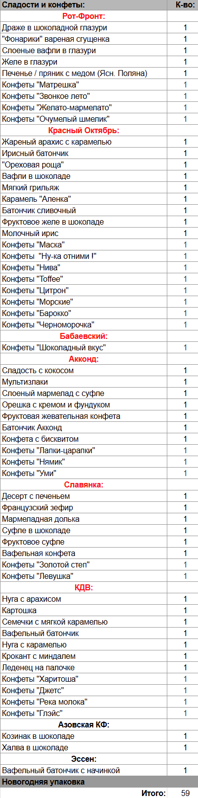 Кол-во сладостей: 59 шт.
